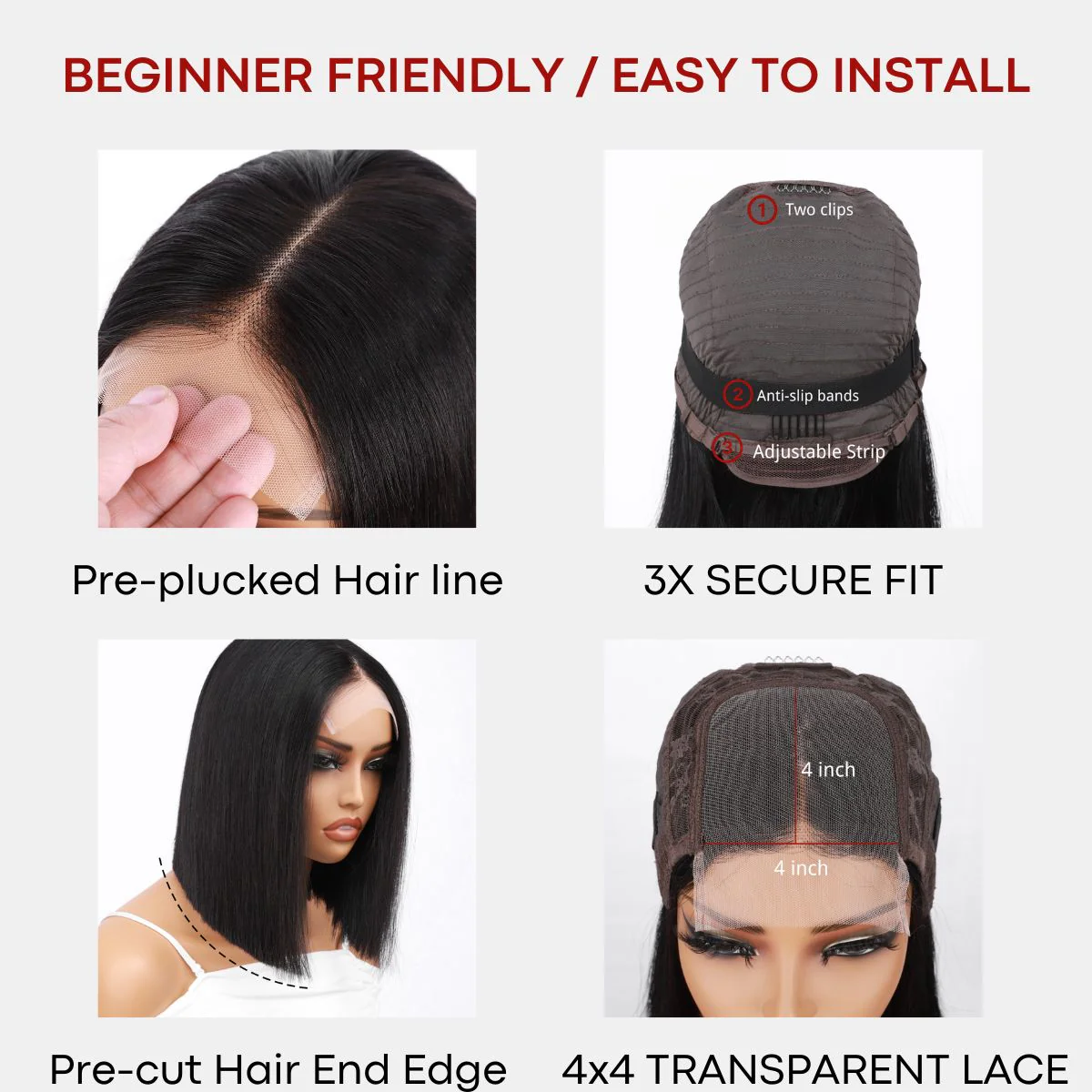 Wig Lace:4x4 Lace, blends perfectly into all skins, can do side part, middle part